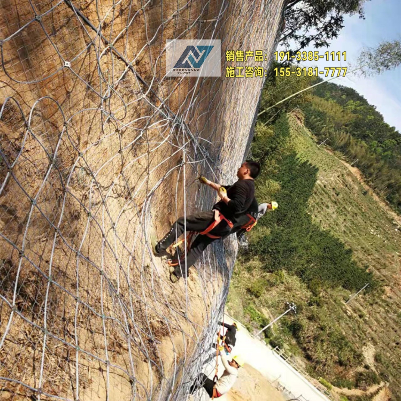 边坡防护网对所防护的区域形成坡面防护,从而阻止崩塌岩石土体的下坠,起到边坡防护作用。
