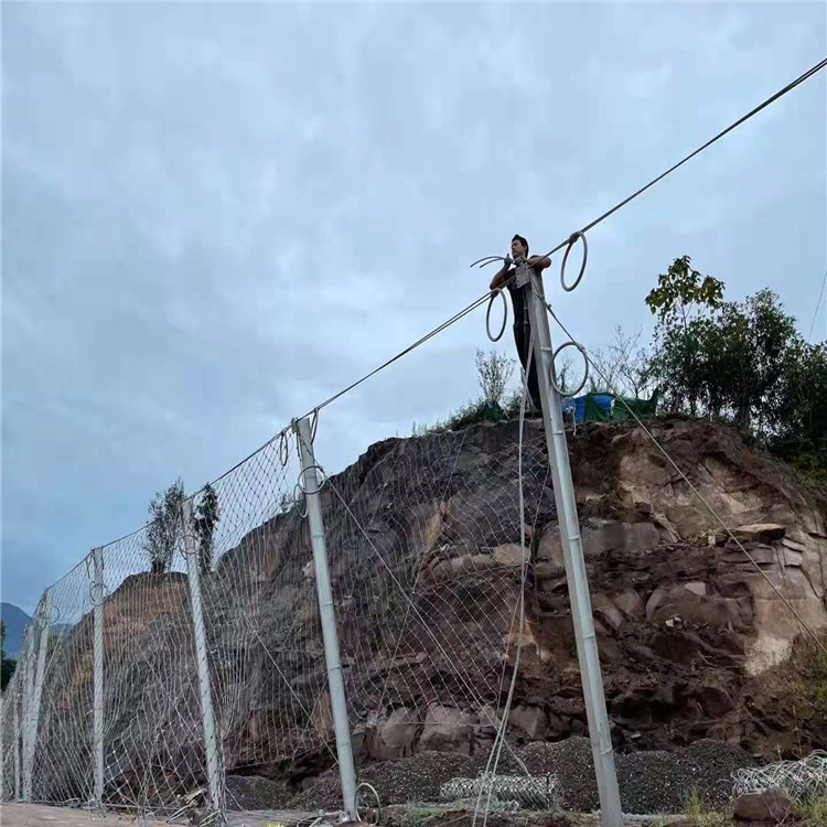 下面我们就先理解一下两品种别的边坡防护网在装置过程中所用到的共同的零部件。被动防护网部件包括:钢丝绳网、高强度钢丝格栅网、钢丝绳锚杆、侧拉锚杆、立柱、上下支撑绳、消能减压环、基座及拉锚绳。