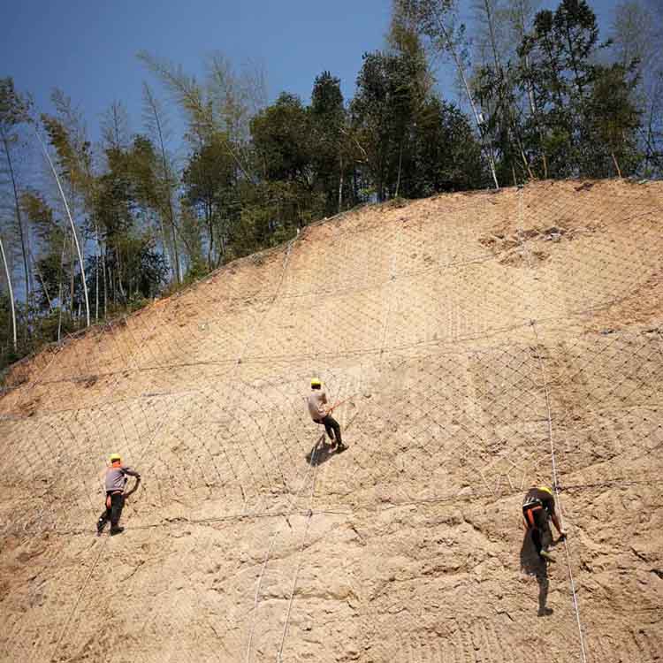 如何依据实践地形,有效合理人性化的停止安装并起到优秀效果真正受益从而实惠是每个客户最关注的中心问题,认识什么是主动防护网(职责:为生活提供防护、防盗、防坠物)系统1、主动防护系统是用以熟习钢丝绳(由钢丝、绳芯及光滑脂组成)网为主的各类柔性网掩盖或包裹在需防护的斜坡或岩石上。