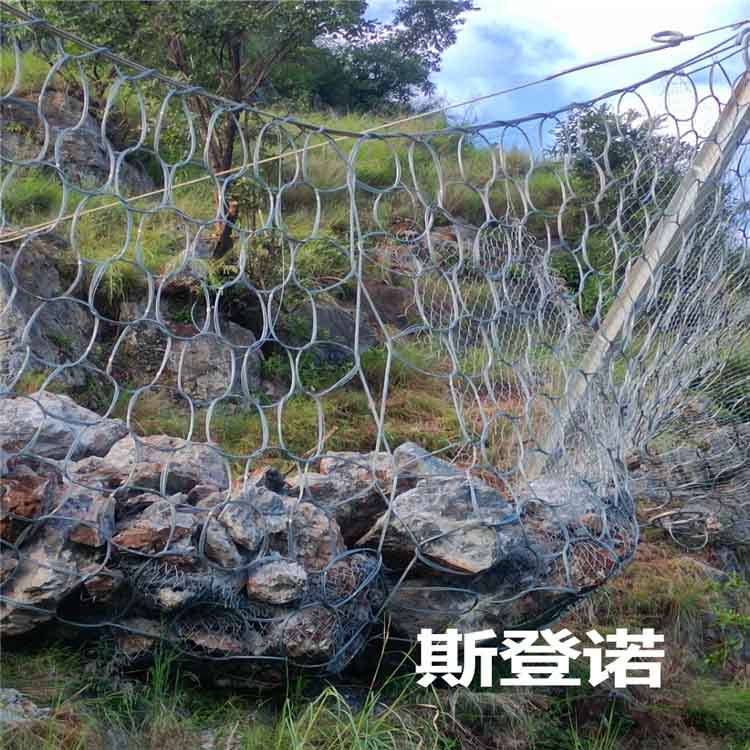 支撑绳是被动防护体系完成全体柔性的中心衔接构件,因此起强度规划上是有满足确保的,普通也不会发作任何损坏,但当遭遇到落石直接冲击时,或许引起整绳或局部钢丝开裂,当有两根以上的钢丝开裂或影响其强度的严峻歪曲发作时,就需求更换整根钢丝绳或发作开裂的局部绳段。