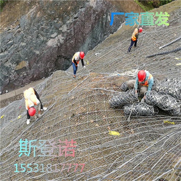 自动护坡网的垂直、水平支撑索装置选用Φ16高强度镀锌钢丝绳。安装前,保证钢丝绳锚浆浆彻底固化,在中止安装前达到恰当的锚固力。