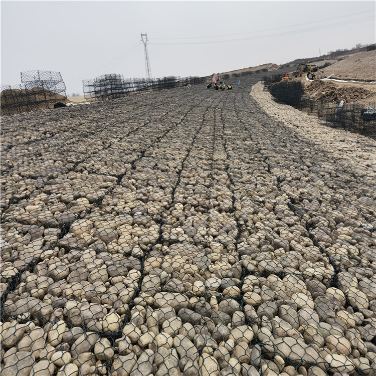 渠道格宾网护坡结构,是由机器编织的六边形双绞合钢丝网面组合而成的工程构件,目前应用于加筋土领域,格宾网箱结构,构成具有柔性、透水性及整体性的特点。格宾网具有占地面积小、承载力要求低、造价经济低、保护生态环境等优势。