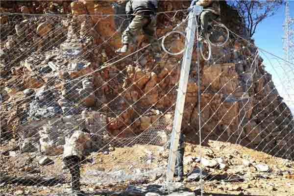 材料:钢丝绳网、支撑绳、减压环。结构:主要由钢丝绳网或环形网四部分组成,(以一层铁丝格栅截断小块岩屑)、固定体系(锚杆、锚索、底座、支撑绳)、减压环、钢柱。适用于高山、高山、建筑设施旁的缓冲区。