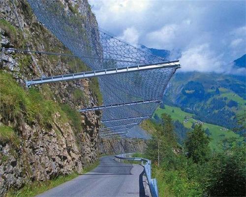边坡防护网的基本原理是经过其柔性结构,将集中荷载分散到较大的范围内,然后减轻对边坡的局部压力。这种原理类似于人体的骨骼和肌肉体系,经过分散冲击力和支撑效果,维护身体免受损伤。边坡防护网一般由高强度钢丝网、支撑绳、锚杆等构成,经过锚杆将网体固定在边坡上,构成一个整体防护结构。