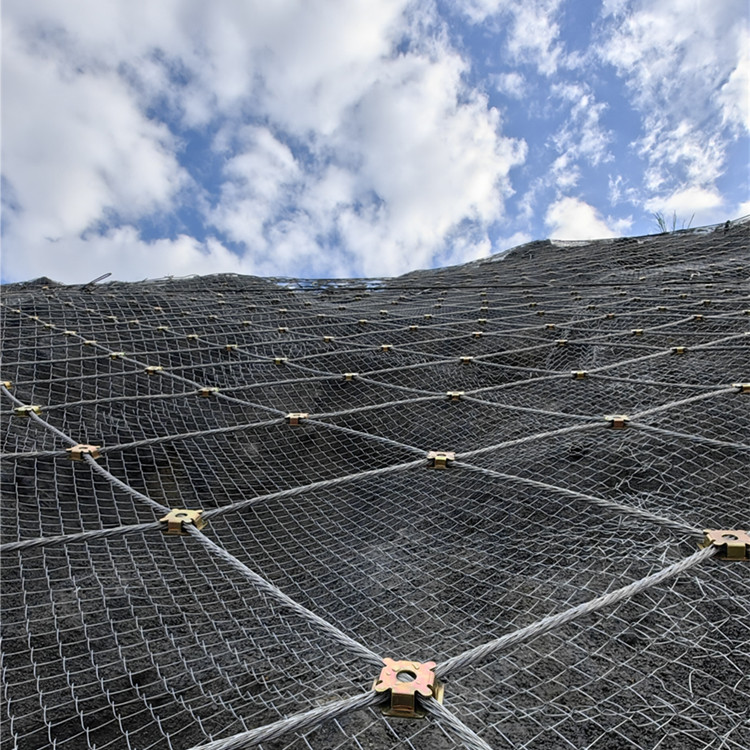 主动防护网系统是以钢丝绳网为主的各类柔性网覆盖包裹在所需防护斜坡或岩石上,以限制坡面岩石土体的风化剥落或破坏以及岩层崩塌,防止碎石掉落,对物体或车辆行人造成伤害。